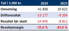 Resultatmarginen forverret seg ytterligere i fjor, fra minus 25,5 % i 2023 til minus 31,1 % i 2024.