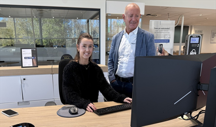 - Overordnet tror jeg det er lurt at vi gjør oss attraktive for unge mennesker. Da vil vi få kvinnelige søkere også, sier Fikstvedt. Her er han med Skoda-selger Karianne Lunde i Forus-avdelingen.