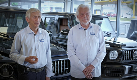 Autocenteret Fjeldstad, som er store på Geländewagen, er blant dem som rammes av den nye praksisen. Hans Jakob Klausen (t.v.) og Bjørn Egil Fjeldstad leder selskapet.