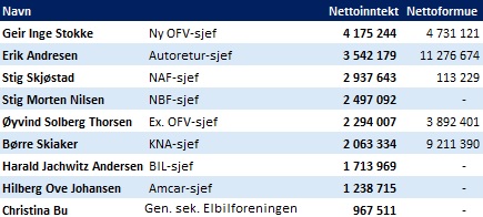 NAF-sjef Stig Skjøstad har for eksempel en nettolønn som er tre ganger så høy som Elbilforeningens leder Christina Bu.