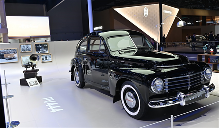 Også Volvo spiller på nostalgien – og har plassert en gammel grammofon ved siden av en PV444.