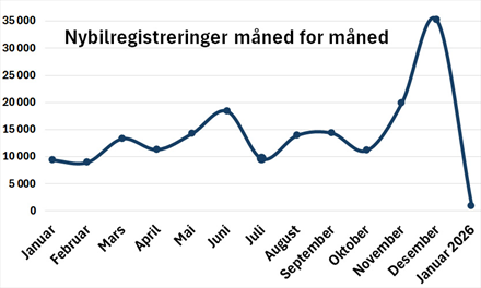 Det ble en heftig avslutning på 2025. I år er det ikke registrert mer enn 940 nye personbiler tre uker inn i januar, 85 % færre enn på samme tid i fjor.
